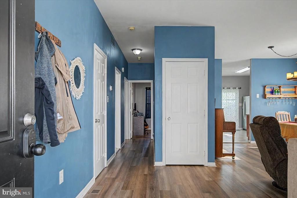 Modern ranch home in the desirable Boothhurst community featuring 2 bedrooms and 2 full baths with a contemporary open floor plan. The home offers a spacious foyer, living room, dining area, and an eat-in kitchen with granite countertops, updated tile flooring, a chalkboard accent wall, a modern faucet, and stainless steel appliances, including a gas stove, refrigerator, microwave, and dishwasher. Enjoy vinyl plank flooring in the main living areas and convenient access to a large, fully fenced backyard—ideal for entertaining, relaxing, or playing. The primary suite features a fully renovated high-end tiled bathroom with a comfort-height vanity. The second full bathroom has also been updated. The second bedroom is currently used as a home office, offering flexible living space. Additional highlights include a full unfinished basement with expansion potential, laundry and storage space, PEX plumbing, and a roof approximately 5 years old. Conveniently located near I-95, I-295, and Route 1, this home sits on a quiet cul-de-sac with easy access to major highways. Schedule your showing today.