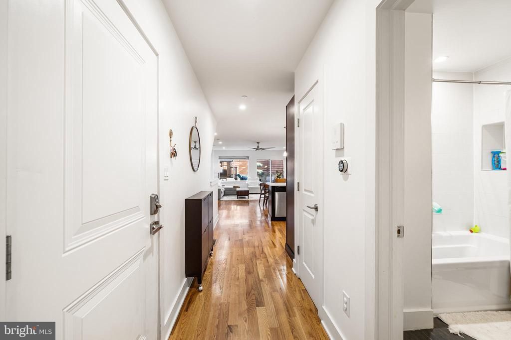 Welcome to this perfectly located 3 bed, 3 full bath bi-level condo! With over 1800sqft and main living area that is over 16 feet wide, you will feel like you have so much space to live in. This main level condo has hardwood floors and recessed lighting throughout. The first bedroom is ideally suited for an office with lots of light and privacy. The kitchen has abundant quartz countertop space, including a breakfast bar and is completely open. The main living area is filled with natural light from the sliders that lead to the bespoke back patio, with special turf grass ideally situated for any pet needs! Downstairs boasts 9" ceilings and large windows that really lighten up the rooms. The primary bedroom has a walk-in closet, and double vanity sink in the en-suite bathroom. The third bedroom has its own en-suite bath as well, with a dry-locked window well. Unique to this home is a full laundry room with room for additional storage. Features include double pane windows, Google Nest smart home equipped, security system, and integrated fire suppression system. Center city bus and subway line are within 2 blocks, and it is a 20 minute walk to Rittenhouse Square. Come check out this spacious, updated condo with close proximity to all that Fairmount and Francisville offer!