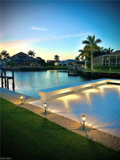 Experience true Marco Island living in this beautifully updated waterfront home, offering modern upgrades, expansive outdoor space, and stunning wide water views. Situated at the end of a quiet cul-de-sac, the property features a brand-new 111-foot seawall with a 25-year transferable warranty, along with a custom-built 800+ sq ft dock accommodating up to a 32-foot boat. A new 16,000 lb boat lift is also included, all with transferable warranties—perfect for boating enthusiasts. The home boasts a spacious, light-filled interior with fully retractable patio doors that seamlessly blend indoor and outdoor living. The large screened-in pool area with covered panoramic enclosure provides the ideal setting for relaxing or entertaining while enjoying serene water views. The modern kitchen is equipped with sleek cabinetry, black granite countertops, built-in oven and cooktop, and high-end appliances, including a Bosch integrated, ultra-quiet dishwasher. The dining area is perfectly positioned to take full advantage of the waterfront scenery. All bedrooms are generously sized with large windows that fill the space with natural light, many offering water views. The primary suite features a luxurious bathroom with a double walk-in shower with multiple shower heads, soaking tub, dual vanities, and contemporary finishes, along with a dedicated dressing area. The guest bathroom has also been tastefully updated. Additional upgrades include impact-rated Low-E windows (2021), a new roof and gutters (2018), new pool, deck, and lanai (2019), multi-split A/C system (2023), water heater (2020), pool heater (2025), and a newly paved driveway and patio (2026). The two-car garage includes a large hidden storage area behind stylish barn doors. This exceptional property combines modern comfort, quality upgrades, and prime waterfront living in one of Southwest Florida’s most desirable locations.