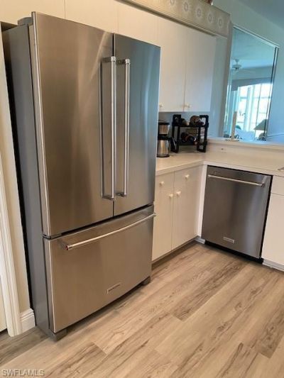 Enjoy this beautifully maintained first-floor condo offering stunning golf course and water views. This residence is available turnkey furnished or unfurnished—tailored to your preference. The unit features true single-level living with numerous updates, including upgraded laminate flooring throughout (2021), a full suite of appliances replaced in 2022 (washer as is), two new TVs in 2026, fresh interior paint, and newer furnishings throughout. The open layout and thoughtful upgrades create a comfortable, move-in-ready environment. Unwind in your screened lanai while overlooking the 6th green, where tranquil pond views and abundant wildlife provide a serene backdrop. Residents of The Villages at Country Creek enjoy access to an exceptional array of amenities, including a well-maintained 18-hole executive golf course, a newly remodeled clubhouse with restaurant (anticipated completion by the end of 2026), five pools, four Har-Tru tennis courts plus one hard court, a fitness center, and bocce courts. A full calendar of social activities ensures there is always something to enjoy. The HOA fee adds significant value by including high-speed internet and Hotwire Communications (Fision), helping streamline monthly expenses and connectivity needs. Ideally located in the Village of Estero, this community offers convenient access to Southwest Florida International Airport, an abundance of dining and shopping options, and some of Southwest Florida’s most desirable beaches. A public library is also within walking distance, adding everyday convenience and lifestyle appeal.
