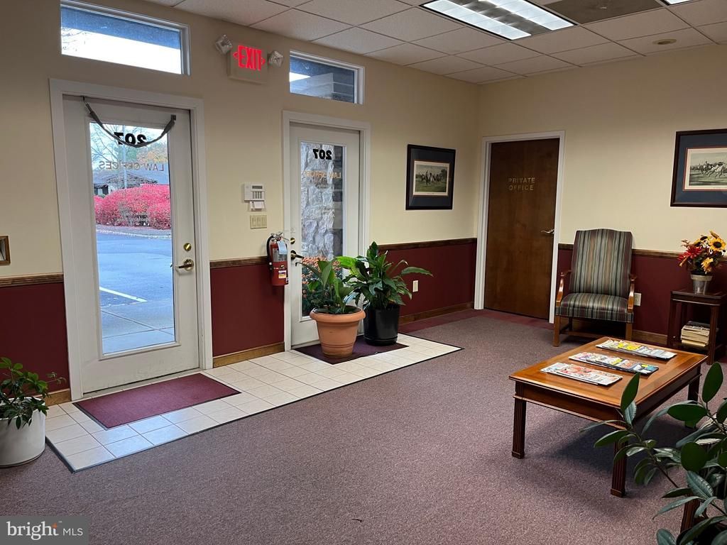 Double-unit professional office suite in the Golden Crest Corporate Center, located on the Hamilton Township/Robbinsville Township border. Currently used as a law office, the suite consists of waiting room, 12 private offices (2 with private bathrooms), 2 common bathrooms, a law library/conference room plus 2 additional conference rooms, kitchenette and storage closet. There is abundant parking at the front door and in the complex. High profile location with easy access to several major thoroughfares.