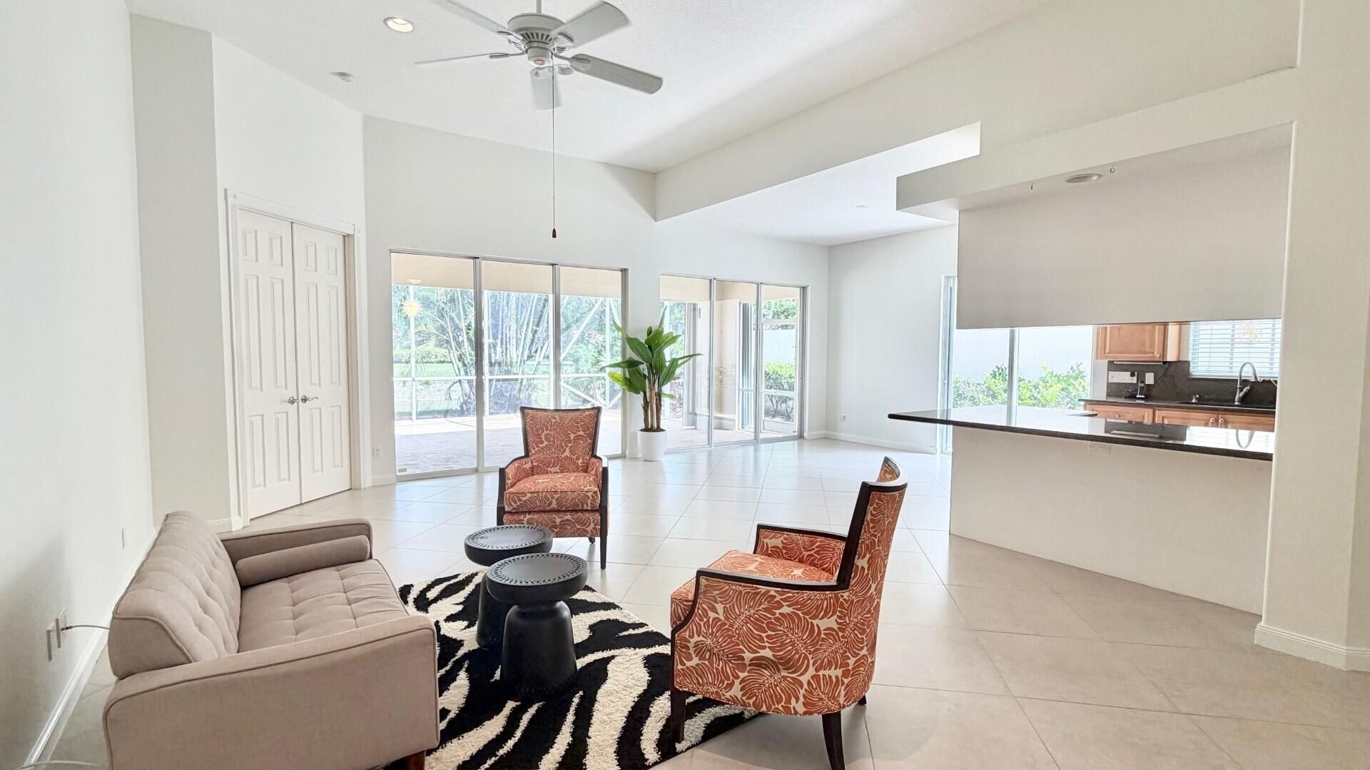 Beautifully maintained 3-bedroom + den, 2-bath Oakmont model with a 2-car garage, ideally positioned to capture a tranquil lake view with exceptional backyard privacy. This freshly painted, spacious home features 12-foot ceilings in the great room, creating an open and airy feel throughout the main living areas. The fully renovated kitchen is a standout, showcasing granite countertops, stainless steel appliances, and modern finishes-perfect for both everyday living and entertaining. The thoughtfully designed split-bedroom floor plan includes a versatile den ideal for a home office or flex space. The primary suite offers a unique dual en-suite bathroom arrangement, a generous walk-in closet, and new wide-plank vinyl flooring. Additional updates include new wide-plank vinyl flooring in the third bedroom, laminate flooring in the second bedroom and den, and tile flooring throughout the main living areas. Step outside to a screened patio overlooking the lake, where you can enjoy peaceful views and added privacy-an ideal setting for relaxing or entertaining. The heart of this unique residential community is its waterfront Town Center where you can grab lunch or dinner at the on-site Centanni Italian restaurant; enjoy the tennis and pickle ball experience on the eight Har-tru lighted courts with on-site tennis instructor and active tennis program. Take a swim in one of the three heated pools, fish from one of the many picturesque bridges; stop by the library, play ping pong or pool. Also located in the Town Center is the full service Illustrated Properties real estate office, beauty salon, mail facility and children's playground. Enjoy 12 miles of scenic pedestrian pathways, take a bike ride or enjoy a vigorous work out in the renovated fitness center or play bocce-all for the exclusive use of River Walk residents! Yoga, mahjong, bridge, aqua aerobics, foreign language classes, crafts and more are some of the other fun activities offered! River Walk offers luxury resort-style living, without extravagant ''country club'' fees! Conveniently located near the turnpike, Palm Beach International Airport, the Outlet Malls, Kravis Center, Downtown, and Palm Beach Island.