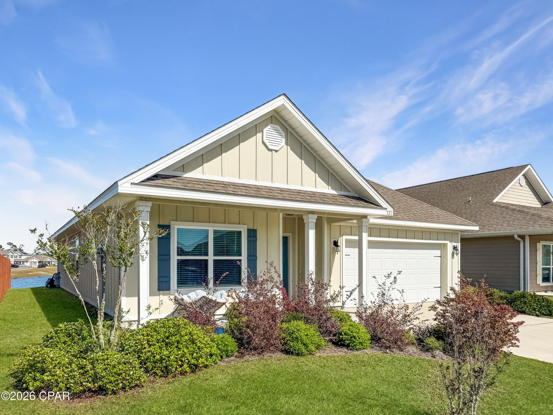 Beautifully maintained and move-in ready, this 4-bedroom, 2-bath Rhett floor plan offers peaceful pond views and a thoughtfully designed layout in the highly sought-after Bridge Harbor community. Ideally located just off Tyndall Parkway, you're minutes from shopping, dining, Tyndall AFB, and everyday conveniences. Inside, the home showcases quality Horton upgrades, including luxury vinyl plank flooring, granite countertops throughout, tray ceilings, and crown molding. The spacious entryway welcomes you with two guest bedrooms and a full bath to the left, while a third bedroom and laundry room are tucked privately down the hall. The heart of the home features an open-concept kitchen and living area, perfectly positioned to capture serene water views. The kitchen is equipped with granite countertops, a large island with breakfast bar and additional cabinetry, a walk-in pantry, recessed lighting, stainless steel appliances, and a dedicated dining space. The living room is highlighted by a double tray ceiling with crown molding, adding an elevated touch. The primary suite offers a relaxing retreat with pond views, a tray ceiling, dual granite vanities, a garden tub, separate shower, and a spacious walk-in closet. Bridge Harbor residents enjoy beautifully maintained grounds with sidewalks throughout, scenic ponds, a resort-style community pool with pavilion and BBQ area, a charming park centered around a historic oak tree, and access to the bay. This home blends comfort, style, and community amenities--schedule your private showing today.