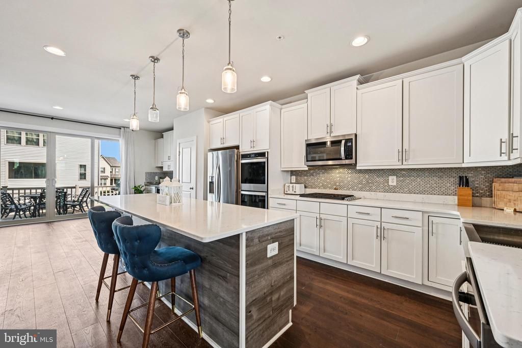 Stunning end-unit townhouse that is move-in ready and packed with unique upgrades including a rooftop terrace! The entry level features brand-new flooring and a versatile multi-use space—perfect for a home office, study, or guest area—along with a full bathroom for added convenience. The second floor boasts a bright, open-concept layout filled with natural light from oversized windows. The chef’s kitchen is a showstopper, complete with double wall ovens, an oversized island with quartz countertops, and ample space for entertaining. The living room features a cozy fireplace, while the dining area includes a built-in bar with a wine fridge. Step outside onto the spacious deck, ideal for relaxing or hosting. A convenient half bath completes this level. On the third floor, the luxurious owner’s suite offers a private balcony, a walk-in closet, and a spa-like bathroom with a dual-head shower. Two additional bedrooms and a full bathroom provide plenty of space for family or guests. A washer and dryer on this level makes laundry a breeze. The top floor serves as an additional private retreat, featuring a second primary suite with a walk-in closet, full bathroom, and access to a private rooftop terrace—perfect for enjoying outdoor living at its finest. This home offers abundant street parking in addition to a spacious attached two-car garage. You can't beat the location, close to commuter routes, shopping, and dining. The Villages of Urbana is not just your standard HOA, it's a way of life. Complete with pools, pickleball courts, fitness center, Baseball Field, Basketball Courts, Bike Trail, Club House, Community Center, Exercise Room, Jog/Walk Path, Library, Recreational Center, Soccer Field, Tennis Courts, Tot Lots/Playground. Located at 3630 Stone Barn Drive.