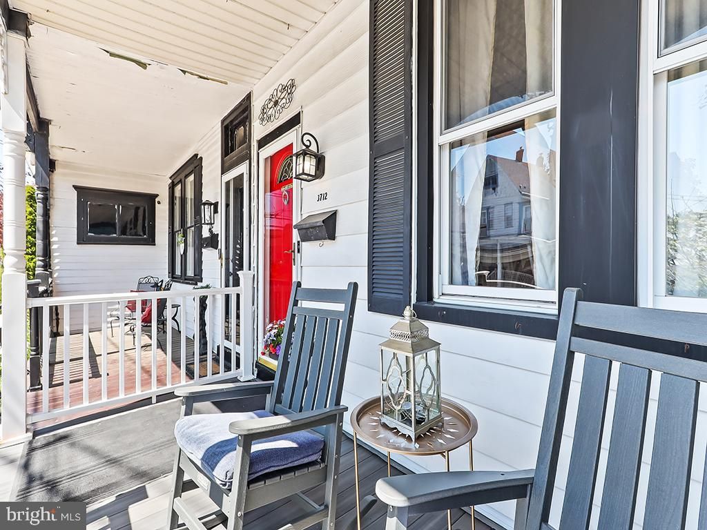Welcome! Step into a home that perfectly blends timeless charm with thoughtful modern updates. From the moment you arrive, you are greeted by an utterly charming, picture-perfect front porch, crafted with maintenance-free composite decking and vinyl railings. The porch offers a cozy, storybook feel that is perfect for sipping morning coffee, decorating with seasonal touches, or simply relaxing at the end of the day. Inside, the home showcases vintage-inspired décor and gleaming hardwood floors that create a warm, welcoming atmosphere. Every space feels both charming and comfortable, with a natural flow that makes you feel right at home. The kitchen has been stylishly updated in 2024 with new cabinetry, modern countertops, a sleek backsplash, updated flooring, and features gas cooking making it perfect for everyday living and hosting alike. Upstairs, you’ll find two inviting bedrooms along with a family room creating an ideal space for relaxing, working, or gathering. The full bath, updated in 2023, adds a fresh, modern touch to the this level. From the family room, enjoy access to the walk-up, fully floored attic providing versatility and the perfect opportunity for a bonus room, office, or creative space. Once in the backyard, discover a beautifully landscaped, fully fenced yard bursting with mature plantings, a spacious paver patio perfect for entertaining, a convenient shed, and a beautiful arbor entrance making it feel like your own private outdoor retreat. The basement adds convenience with dedicated laundry and plenty of storage. This home beautifully combines character, charm, and smart updates to welcome its next owner. One year home warranty included. Convenient and walkable to shopping, restaurants, and entertainment. Also, close to major highways and transportation, including the Hamilton Train Station.