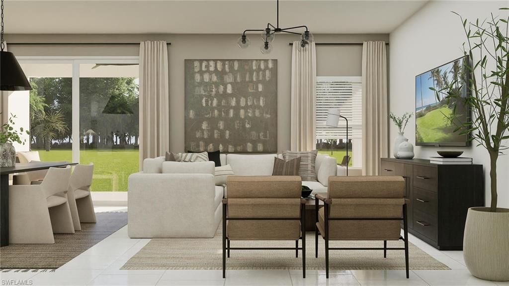 One or more photo(s) has been virtually staged, AI generated or rendered. THIS HOME IS READY FOR YOU NOW!! Hampton Lakes is a collection of new single-family homes for sale at the River Hall masterplan in Alva, FL. This gated community is designed to cater to active lifestyles, featuring an array of amenities including a fitness center, resort-style pool and tennis, pickle ball and bocce ball courts. On the first floor of this new two-story home is a modern, open-concept main living area. It showcases a kitchen with a center island overlooking the welcoming family room and a sunlit dining area with access to the spacious covered porch. In a rear corner is the serene owner’s suite with a private bathroom and walk-in closet. Throughout the home are five bedrooms to provide restful retreats and a sprawling second-floor loft for additional entertainment space. Prices, dimensions and features may vary and are subject to change. Photos are for illustrative purposes only.