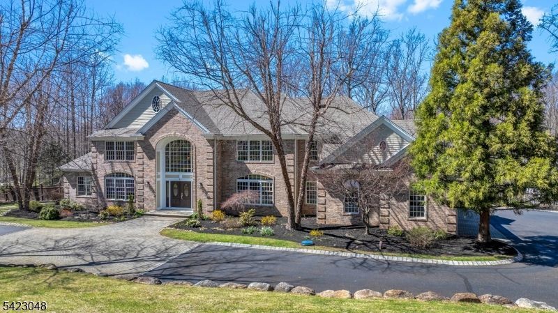 A residence of exceptional grace and presence, this custom brick-front Colonial is set amidst 5.6 serene acres in one of Mendham's most coveted natural settings. Built in 2003, the home offers 6 bedrooms, 4 1/2 baths, and 2 fireplaces, thoughtfully designed for elegant daily living and effortless entertaining. A soaring great room with second-floor gallery overlook introduces a sense of grandeur, while the updated chef's kitchen is appointed with a quartzite island, GE Monogram 6-burner range with grill, Sub-Zero refrigerator, and KitchenAid dishwasher. Refined formal spaces include a dining room with inlaid hardwood flooring and a richly appointed library/home office with French doors. A spacious game room and private first-floor guest suite enhance the home's versatility. Upstairs five airy bedrooms await, two of which feature ensuite full baths. The expansive primary suite offers a tranquil retreat with fireplace, dressing area, and luxurious bath. The expansive full basement with over 4,400 sq ft of untapped potential, ready to be transformed into the ultimate luxury lower level with endless possibilities to create a home theater, wellness retreat, gym, wine cellar, additional living and entertaining space. Outside, a beautifully composed setting unfolds with a heated in-ground pool and spa, expansive patio, multi-tier trex deck, pergola, and direct access to Buttermilk Falls. Full roof just replaced! A rare offering defined by privacy, sophistication, and natural beauty.