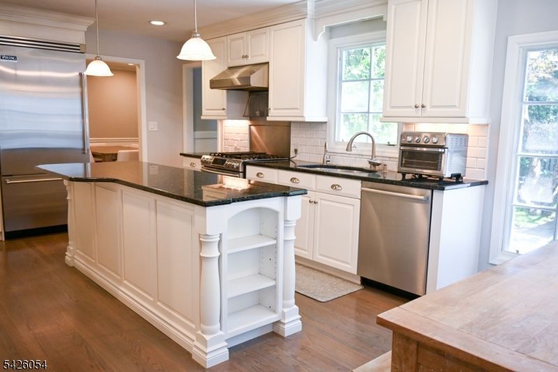 This turn-key Colonial offers timeless elegance and modern amenities on a tree-lined street in one of Summit's most desirable neighborhoods. The spacious layout includes 4 bedrooms and 2.5 baths, a bright kitchen with center island, crisp white cabinetry, and a built-in banquette that opens to a cozy den. Enjoy formal entertaining in the elegant dining room and relax in the oversized living room. A mudroom, first floor powder room, and a finished basement provide functional everyday living space ideal for a home gym, playroom or office. Upstairs, the primary suite features a walk-in closet, two additional closets, and a spa-like marble bath with a jetted tub and oversized steam shower. A second-floor laundry room with built-in storage adds everyday convenience. 2 car detached garage.