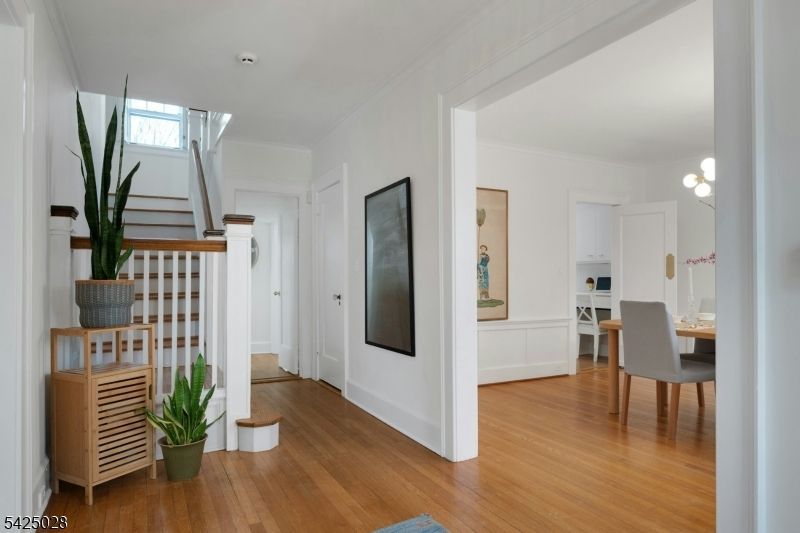 Picture-perfect center hall Colonial on a quiet, tree-lined block just two blocks from the train and close to Upper Montclair village, an exceptional opportunity not to be missed. Set on a rare .39-acre lot, this beautifully maintained and move-in ready home offers the perfect blend of timeless character, generous space, and unbeatable convenience. Sun-filled and inviting, the home features high ceilings, hardwood floors, original moldings, original doors and hardware, and two fireplaces. The updated kitchen, with delightful morning light and stainless-steel appliances including Sub-Zero, opens to a stunning great room addition with built-in bar, wine refrigerator, fireplace, and huge glass doors overlooking the patio and expansive private backyard. A formal dining room, large living room, two sunrooms, and finished basement provide exceptional space for everyday living, entertaining, work-from-home, and play. Freshly painted inside and out, with central A/C, whole-house generator, newer water heater, resealed driveway, and detached two-car garage, this home offers year-round comfort and peace of mind. Spanning four finished levels, it includes 5 bedrooms, 3 full baths, and 2 half baths. The backyard is professionally landscaped with mature trees, flowering gardens, and room for a swing set, pool, and sports court all at once. With both local and express trains nearby, Manhattan is just 45 minutes by train or approx 30 minutes by car or bus. High & Best Wednesday 4/22 12:00pm