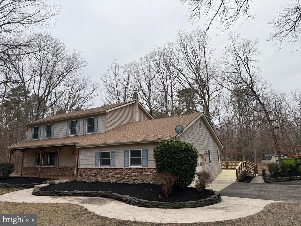 Welcome to 620 Columbia Road, Mullica Township! Nestled on a peaceful 4.22-acre property, this custom-built home showcases exceptional craftsmanship and timeless design. With cedar-style siding, stone accents, and outstanding curb appeal, the residence offers more than 2,500 square feet of thoughtfully designed living space. The main level features a spacious eat-in kitchen complete with granite countertops, solid red oak cabinetry, and brand-new stainless steel appliances. A dramatic two-story family room with a floor-to-ceiling brick fireplace creates a stunning focal point, while formal living and dining rooms provide the perfect setting for entertaining. A convenient powder room completes the first floor. Upstairs, you’ll find three generously sized bedrooms, two full bathrooms, and a versatile loft overlooking the family room—ideal for a home office, reading nook, or additional living space. Additional highlights include beautiful solid wood details throughout, a clean and dry crawl space with a poured concrete floor, a brand-new roof, dual-zone HVAC, an attached two-car garage, a detached one-car garage, and two additional outdoor buildings offering extra storage or workspace. A truly must-see home offering privacy, space, and comfort in a serene setting.