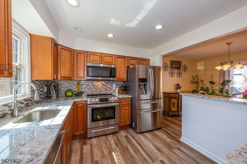 Welcome to this beautifully updated residence in the desirable Sheffield Mews community, ideally positioned on a peaceful cul-de-sac. Blending modern upgrades with timeless style, this home offers comfort, thoughtful design, and the convenience of a one-car garage with a spacious attic for additional storage. Step into a welcoming foyer with elegant tile flooring that flows seamlessly into a beautifully appointed kitchen and dining area featuring rich wood floors. The layout continues into a spacious and inviting living room, perfect for everyday living and entertaining. The fully remodeled kitchen is complete with solid wood cabinetry, granite countertops, a stylish backsplash, premium appliances. The formal dining room features sliding glass doors that open to a private backyard, offering scenic views of the sitting area and barbecue space. Upstairs, you'll find two generously sized bedrooms and two full bathrooms, offering both comfort and flexibility. The fully finished lower level provides versatile additional living space, including a laundry area, ample storage, and multiple closets perfect for a home office or gym. The community offers desirable amenities, including sidewalks, a playground, and optional access to a pool. Ideally located near parks, shopping, dining, and transportation, this home is approximately 4 miles from the New York Ferry and South Amboy Train Station, making commuting easy and efficient.