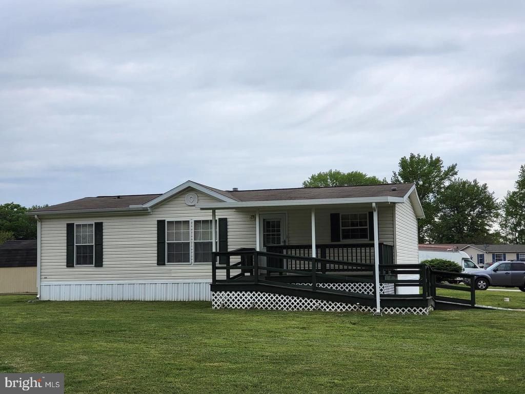 Here is a great opportunity to own this 3 bedroom 2 full bath home in Fox Pointe Village. As you approach the home take notice of the large covered deck with wheelchair ramp making this home easily accessible. Enjoy sitting on the front deck anytime rain or shine, you're covered by the large permanent metal roofed awning. As you enter the home you'll be greeted by an open floor plan with a large living room and dine in the kitchen. Cozy up by the custom Amish built gas fireplace, professionally installed from Byler's Stove Shop. The spacious master bedroom offers a walk in closet, on-suite bath with upgraded Jacuzzi brand walk-in shower. Two bedrooms on the other side of the home's split floor plan share a hallway bathroom. Large shed, and all appliances convey AS-IS. There is a land lease of $700 per month and all potential buyers must be approved by community management prior to finalizing the purchase. Water, Sewer and Trash is included in the lot rent.