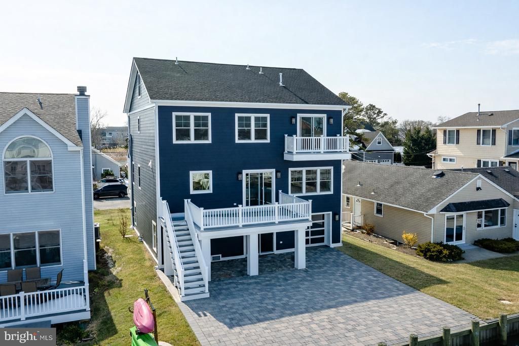 Welcome to coastal luxury living in this exceptional new construction home offering a little over 3,000 square feet of thoughtfully designed living space. Built with high-end materials and attention to detail throughout, this 5-bedroom, 3.5-bath residence delivers both style and function. The exterior makes a striking impression with Andersen windows and doors, James Hardie siding extending all the way to ground level, and fiberglass decks built for durability and low maintenance. Outdoor living shines with a large paver patio, a brand-new dock, vinyl bulkhead, and a rare full-glass garage door at the rear of the home—perfect for seamless indoor-outdoor access and entertaining. Inside, the fully finished ground-level garage area offers flexibility and additional living space. Throughout the home, you’ll find elegant 7” white oak hardwood floors, a gas fireplace anchoring the main living area, and a modern open layout designed for today’s lifestyle. The kitchen is equipped with premium stainless steel Café appliances, combining performance with sleek design. The first level of the home features a dedicated home office—ideal for remote work or a private study—along with a formal living room that adds a touch of timeless sophistication while still flowing seamlessly into the rest of the living space. The primary suite is a true retreat, featuring a private walkout balcony, spacious walk-in closets, and a spa-like bathroom with heated floors. With five generously sized bedrooms and 3.5 beautifully finished bathrooms, this home offers ample space for family, guests, or a home office setup.